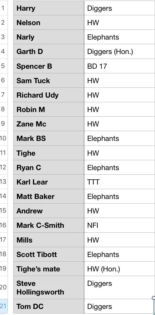 In 2018, with “Team Tall” playing “Team Short”, Nelson was angling for a threepeat, but it was not to be, thanks to Spencer Bailey and his Volvo XC90-sized testicles. Striding in with 5 balls to face and two boundaries needed to win off a fired-up Harry who was intent on cleaning up the tail, Spencer was unperturbed. (Eagle-eyed spectators would have spotted Nelson practising his victory speech at point, and quietly mouthing the word “three-peat” to himself as he gently stroked his right nipple.)