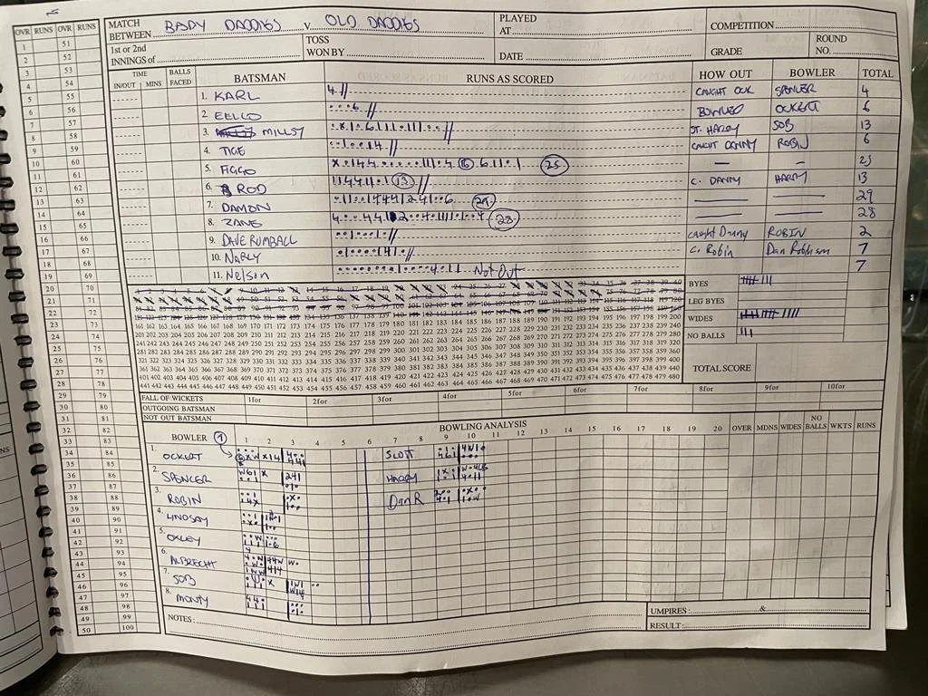 The Grand Daddy’s, skippered by Scott won the toss and with one eye on the BBQ and his heavy Saffa representation elected bowl first.
