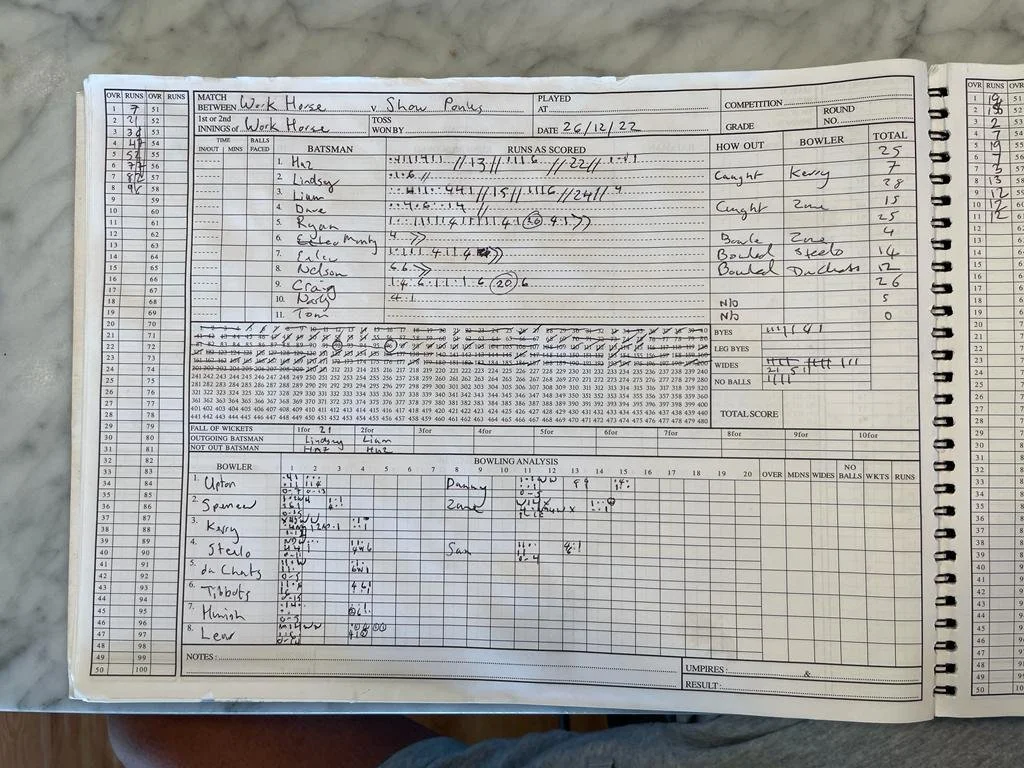 The Work Horse innings opened up with Haz and Lindsay, where they navigated an unexpected opening bowling pairing of Upton and Spencer before BDT debutant Kerry claimed Lindsey as the first wicket of the day in the 3rd over.