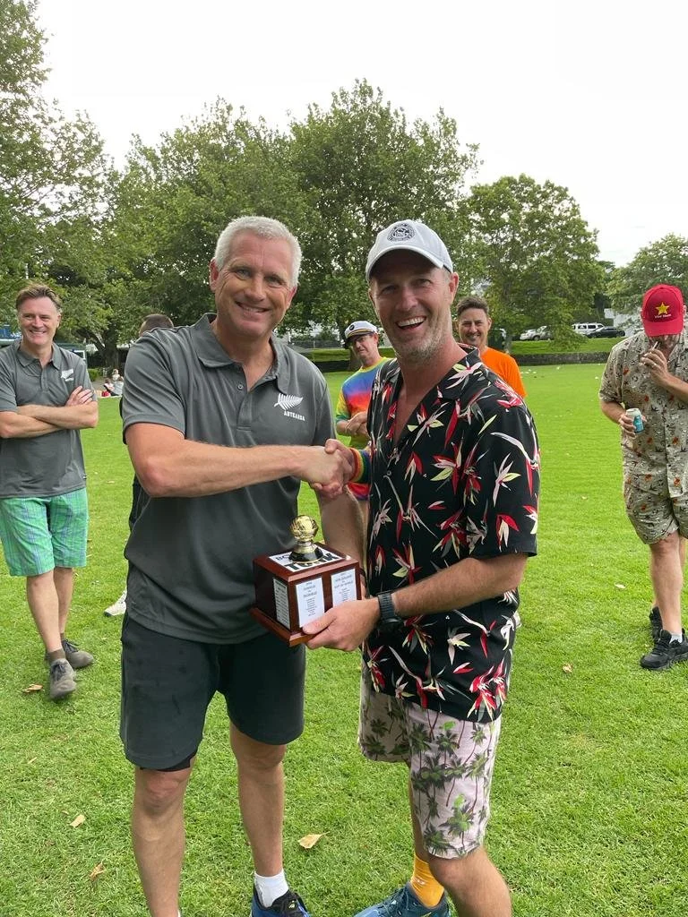 Spencer quickly reached into his back pocket to produce his Devonport Diggers Male Prostitution collective employment agreement and claimed he should be treated the same as his co-work Eelco and have immunity from stumpings. Haz wasn’t convinced Spencer and Eelco were of quite equal status, but in the spirited of BDT, a refreshment was run out to Spencer and he continued his innings.